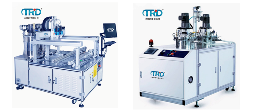 ab灌膠機(jī)又叫雙組份灌膠機(jī),其中a膠為主劑,b膠為固化劑,ab膠通過混合攪拌后,進(jìn)而發(fā)生反應(yīng)。目前市面上應(yīng)用較為廣泛的膠水有環(huán)氧樹脂,聚氨酯PU,液體硅膠等,與固化劑的配比比例從1:1-----10:1不等。