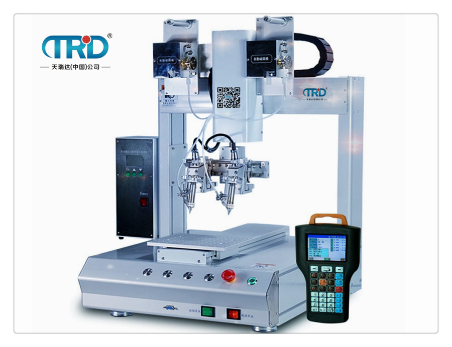 TH-3210三軸雙頭自動焊錫機可對各種工件進行高速拖焊,點焊,斜線焊接等。解決了人工重復性焊接動作出現的焊點不均勻、虛焊等現象。我們的優勢是焊點一致性好,品質穩定。自動焊錫機操作簡單,生產效率高、焊接質量好、環保又節能、初學者也能達到熟練工人的焊接效果。本機采用簡易快速地輸入焊錫程序,其軟件并具有強大的編輯功能,可輕易、快速的完成程序教導。