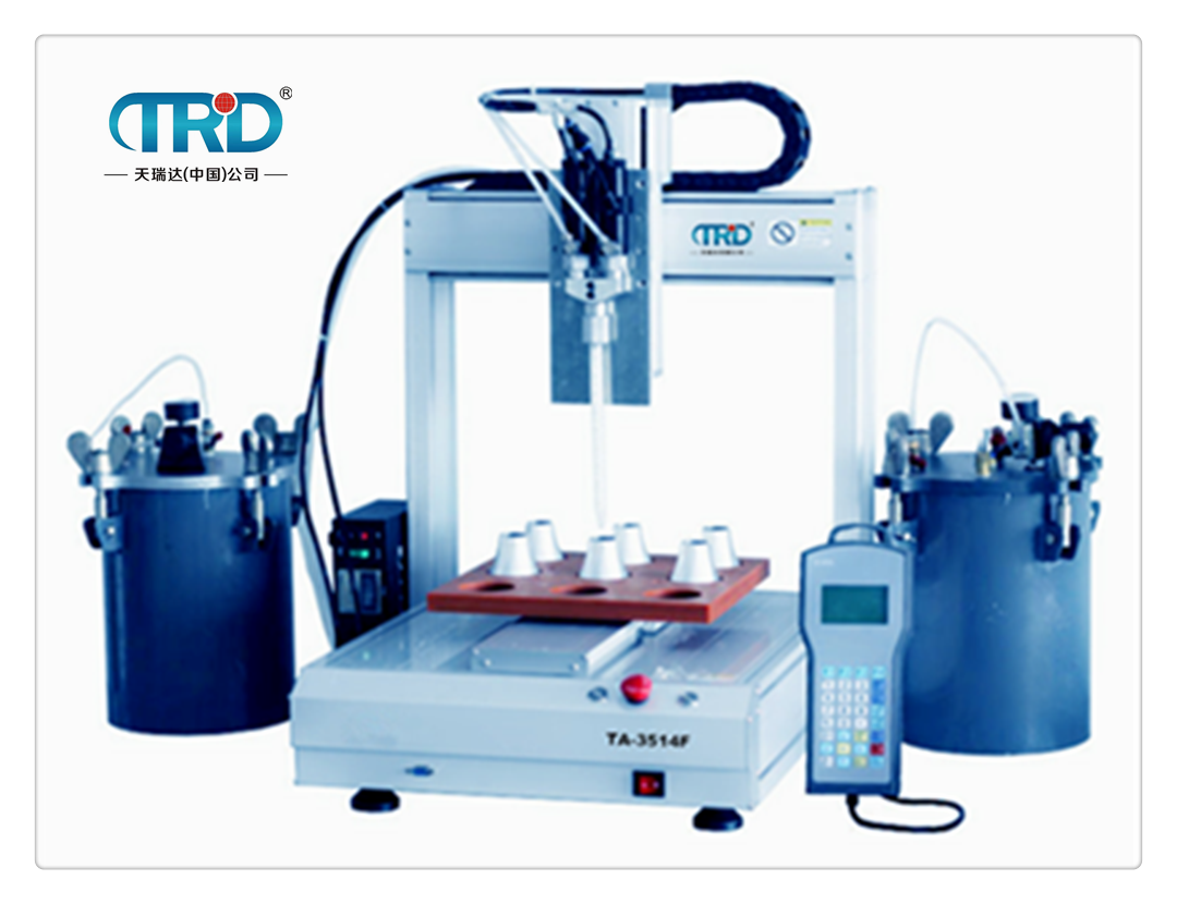 TB-3310AB雙液自動點膠機可對各種工件進行自動點膠作業。解決了人工重復性點膠動作出現的點膠不均勻等現象。并可以提升效率,節省人力??商娲斯ぬ囟ǖ狞c膠作業,實現機械化生產。自動點膠機操作簡單,生產效率高、點膠質量好、環保又節能、初學者也能達到熟練工人的點膠效果。本機采用簡易快速地輸入點膠程序,其軟件并具有強大的編輯功能,可輕易、快速的完成程序教導。